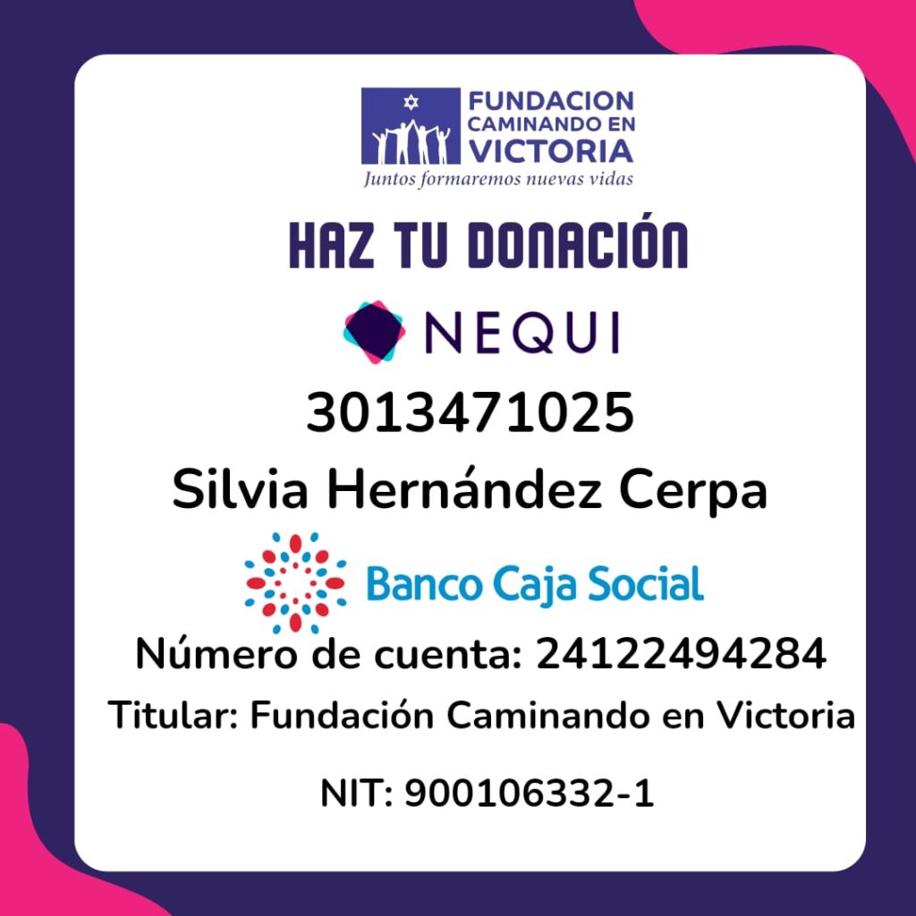 También puedes realizar tus donaciones por transferencia directa por Nequi ó a nuestra cuenta del banco Caja Social, a continuación los detalles: